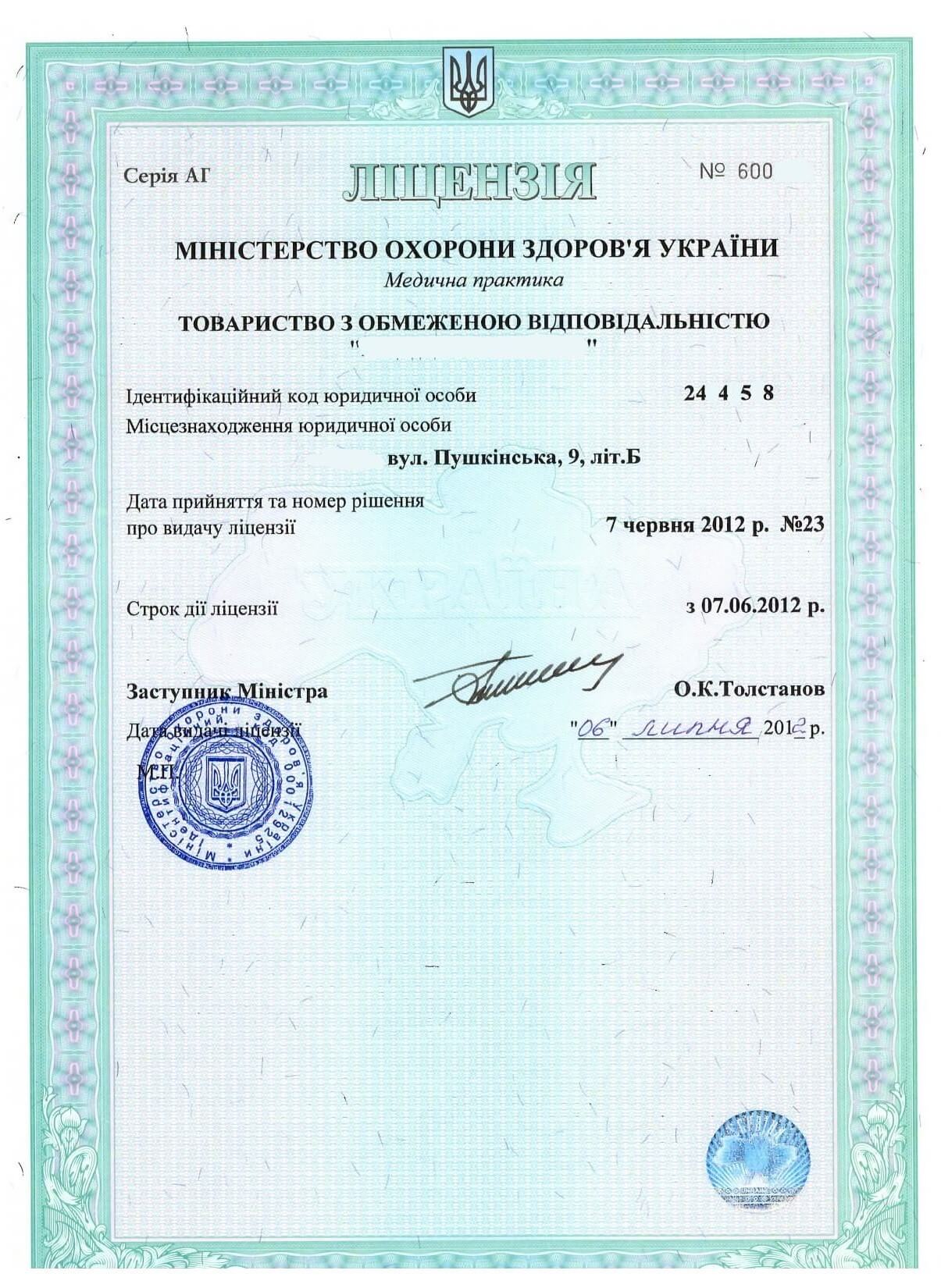 Государственная лицензия №АА-11-22-334455 Выдана Департаментом Здравоохранения 16.06.2015